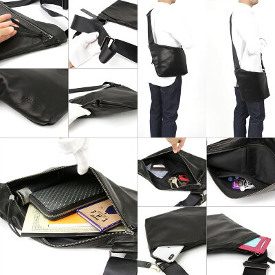 余計なものを削ぎ落としたシンプルなデザインの薄マチフォルムのすっきりした斜めがけバッグですが、シンプルだけでは終わらせない個性的なアシンメトリーフォルムとなっております。