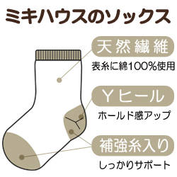 学校や幼稚園でもお使いいただけますので重宝しますよ リーナちゃんソックスもお気に入りの1足に加えてくださいね! ●13-15cmのみ簡易すべり止め付き 【ミキハウスこだわりのソックス】 表糸には天然繊維の綿100%使用。